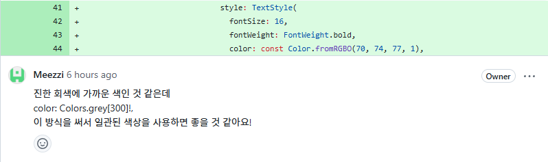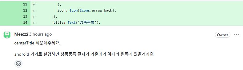 그 외에도 주석의 목적, 컬러 설정 방식, 위젯 레이아웃 구성, centerTitle 설정 등에 대해서도 알 수 있었다.