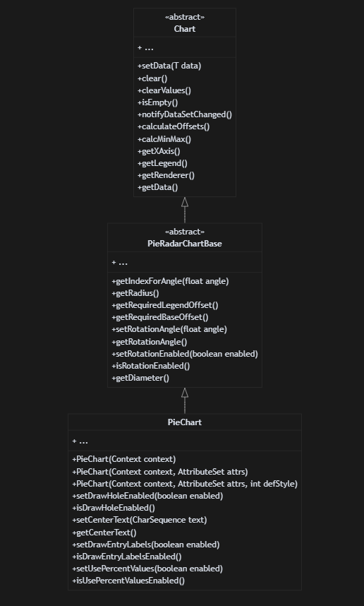 먼저 PieChart는 PieRadarChartBase를 상속받고, PieRadarChartBase는 Chart를 상속받는다.
