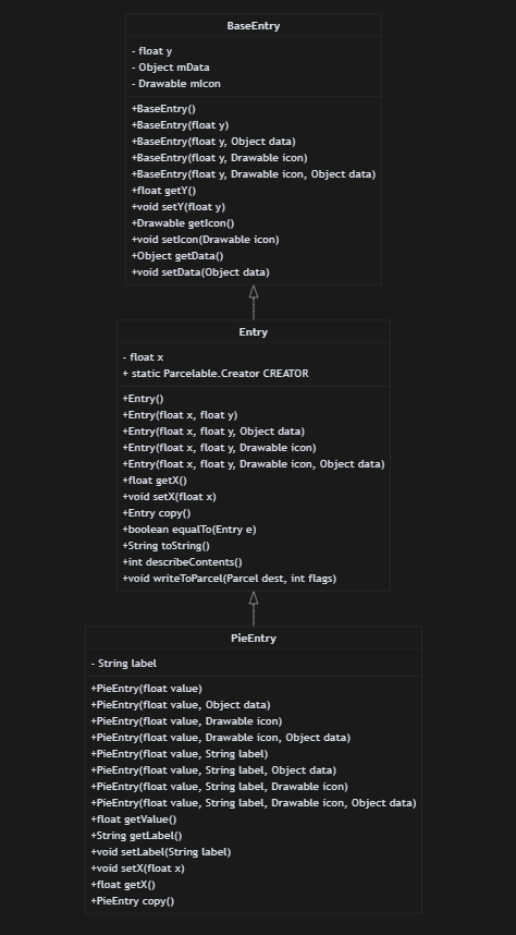 PieEntry는 Entry를 상속받았고, Entry는 BaseEntry를 상속받는다.