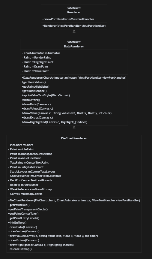 PieChartRenderer는 DataRenderer를 상속받고, DataRenderer는 Renderer를 상속받는다.