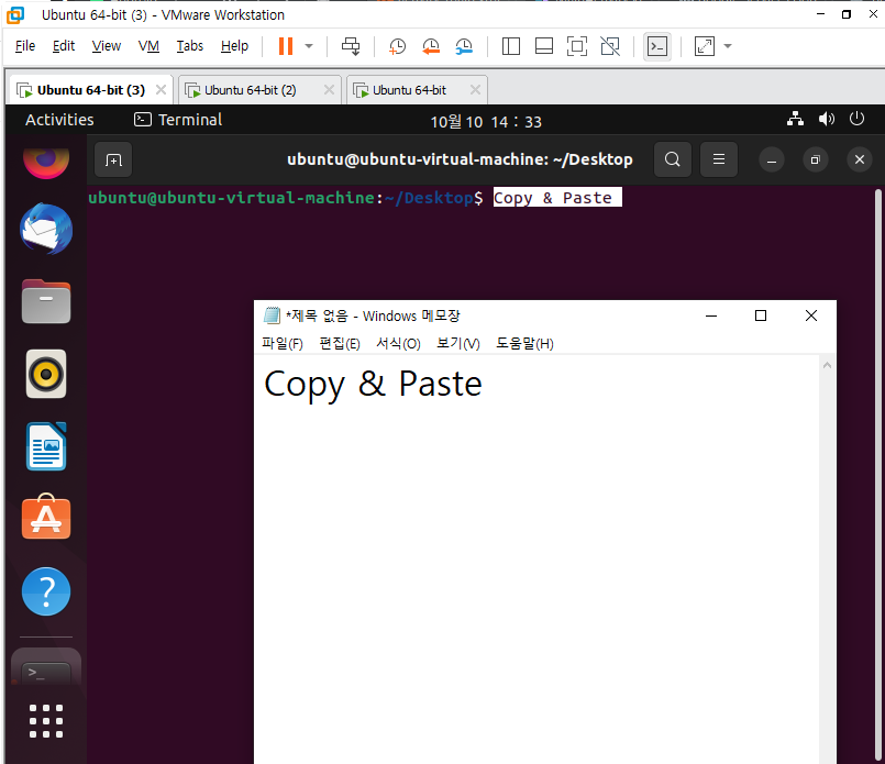 윈도우에서 가상머신까지 간편하게 복사 및 붙여넣기를 하는 방법이다.
