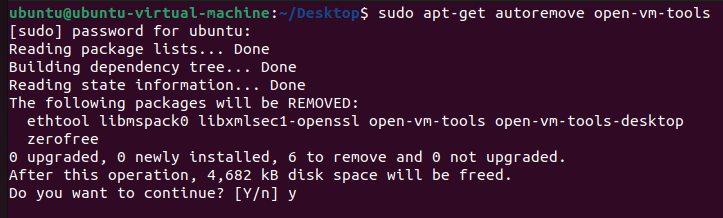 sudo apt-get autoremove open-vm-tools