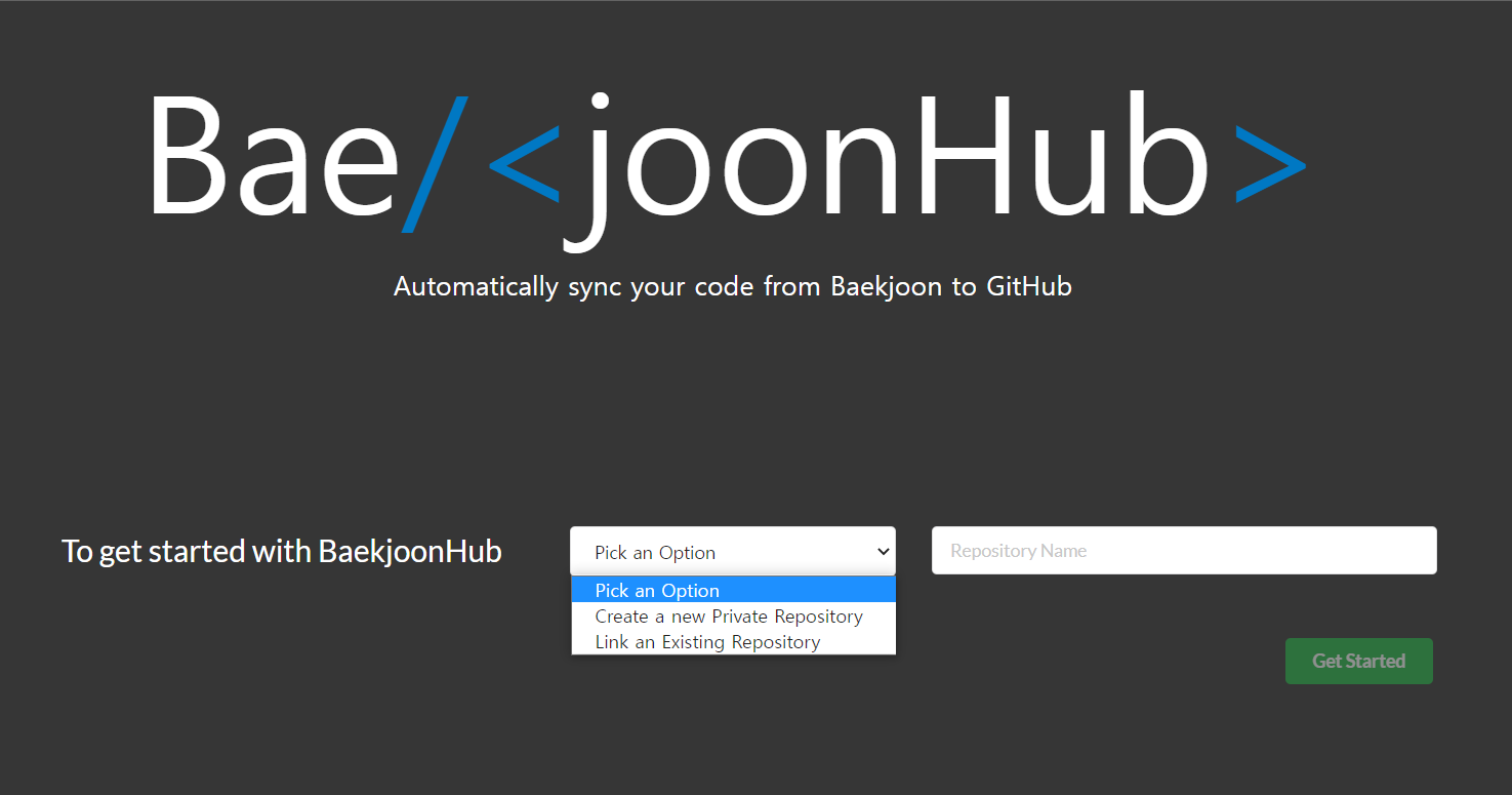 풀이한 문제를 깃허브의 어느 저장소에 커밋할 건지 선택하는 구간입니다.
