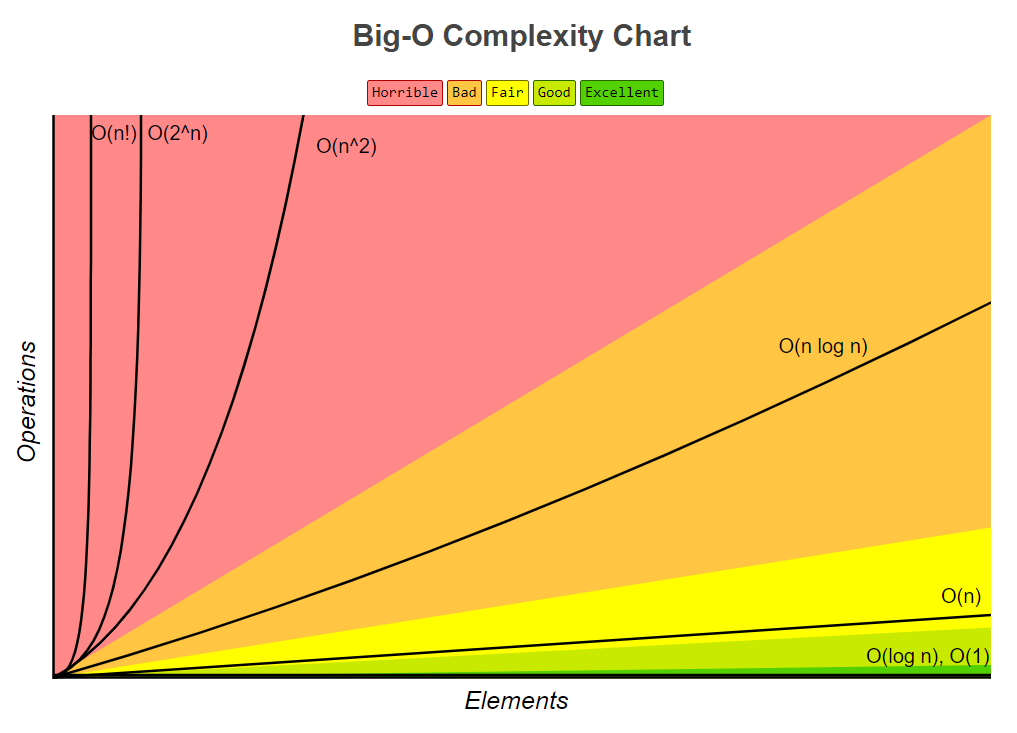 알고리즘은 빅-오 표기법(O(n))을 기준으로 계산한다. 신뢰성이 떨어지는 오메가 표기법이나 평가하기 까다로운 세타 표기법에 비해 성능을 예측하기 용이하기 때문이다. 즉, 최악의 상황을 고려해야 한단 뜻이다.