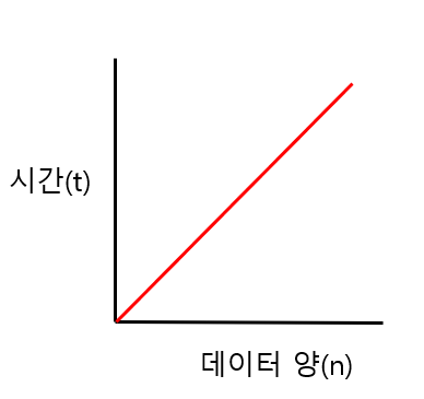 데이터 양의 크기에 따라 시간이 1:1의 관계를 가진다. 즉, 데이터양이 많을 수록 처리 시간도 길어진다.